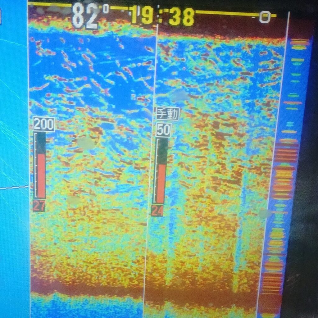 集魚灯つけて5分もしないうちに反応ビッシリ!!