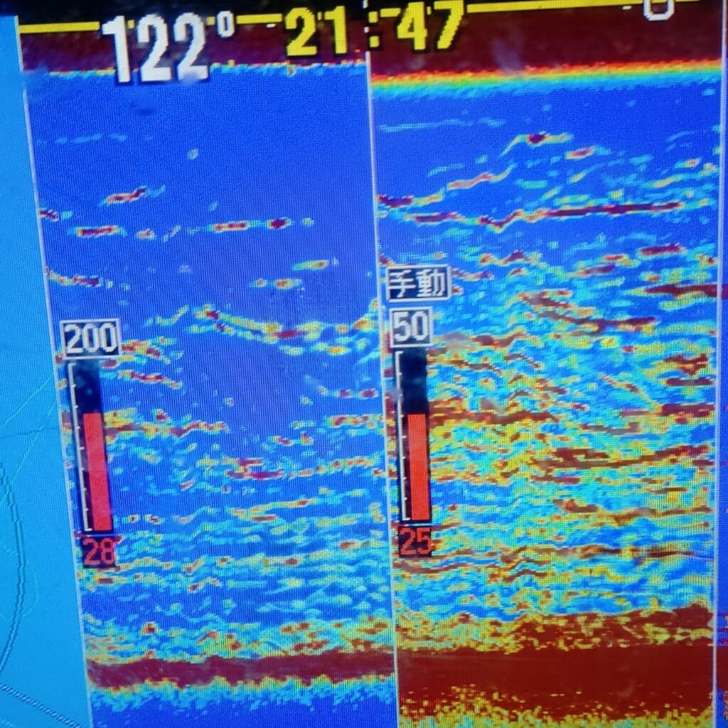 魚探の反応も上から下まで凄い事に