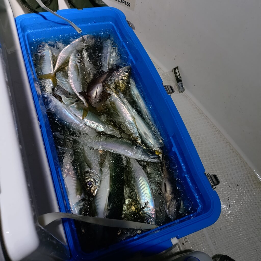 釣れ出しが遅かったので30分だけ時間延長しましたが短時間で60〜100リットルクーラーが満タンになりました♫♫♫