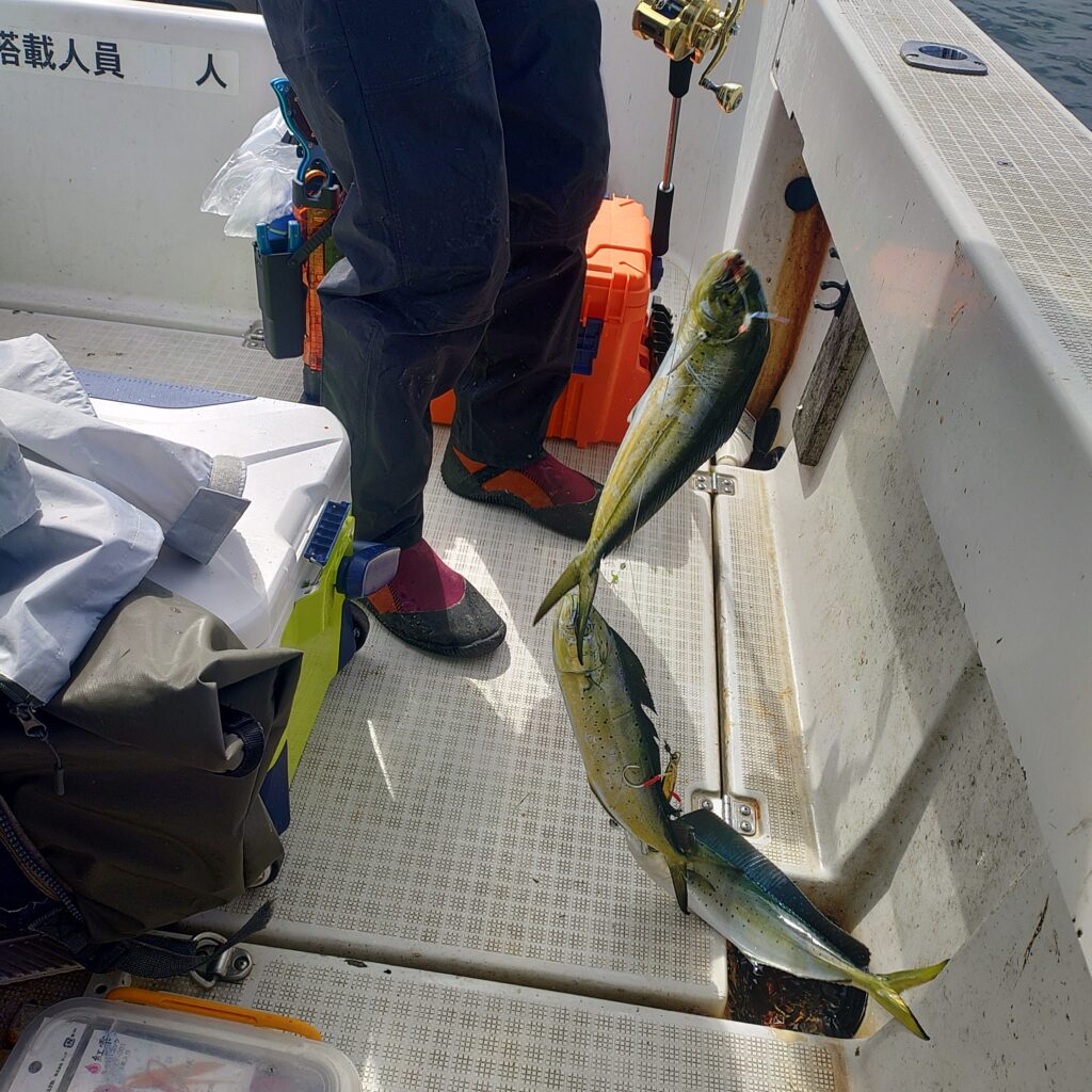 タチウオ、メジマグロ(リリース)、スマ、ペンペンシイラと色んな魚がヒット